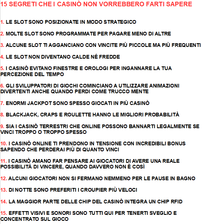 LISTA DEI SEGRETI CHE I CASINÒ NON VOGLIONO CHE TU SAPPIA