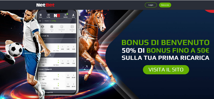 Tutt'altra offerta viene invece riservata da Netbet agli appassionati di scommesse sportive che prevede un generoso bonus di benvenuto sport del 100% fino a 1.000€ sulla prima ricarica.